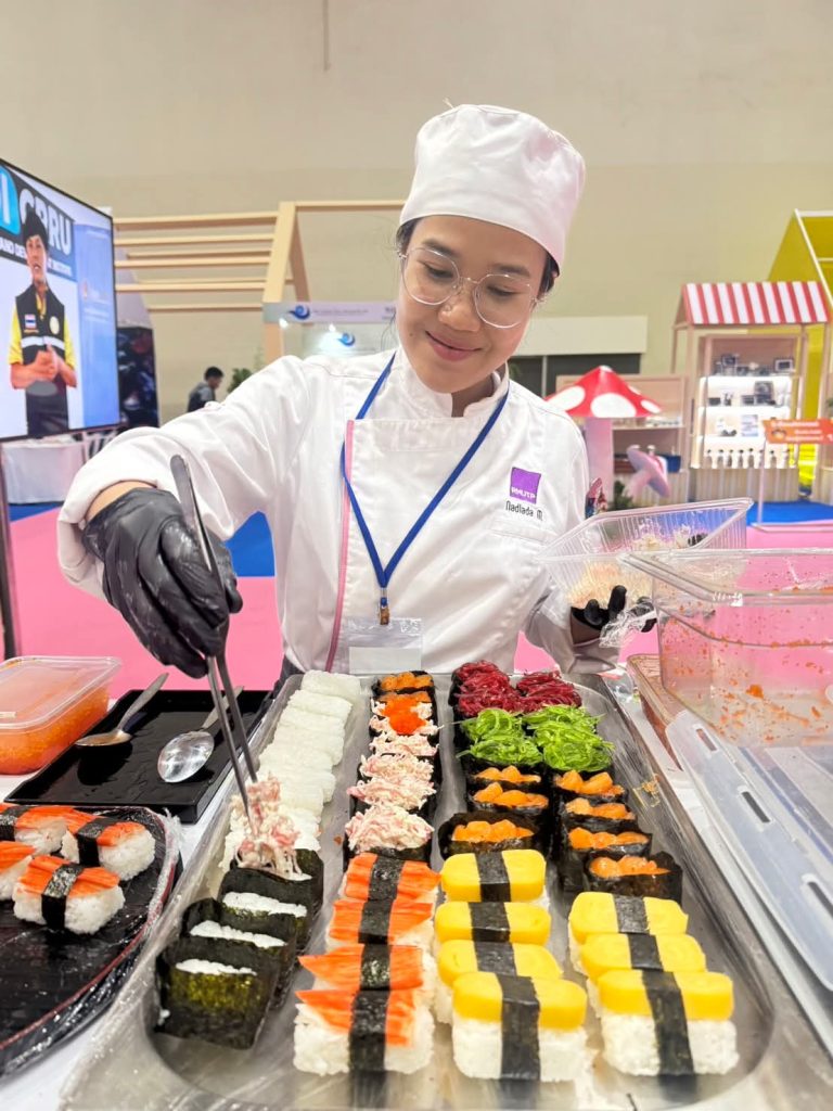 ผศ.ดร.ศันสนีย์ ทิมทอง พร้อมด้วยนักศึกษาสาขาวิชาอุตสาหกรรมการบริการอาหาร คณะเทคโนโลยีคหกรรมศาสตร์ มหาวิทยาลัยเทคโนโลยีราชมงคลพระนคร ได้รับเชิญร่วมสาธิตและจัดชิมเมนู ซูชิ ในงาน ARDA AGRINEXT THAILAND 2025 ระหว่างวันที่ 25 – 28 กันยายน 2568 ณ อิมแพ็ค เอ็กซิบิชั่น ฮอลล์ 5 เมืองทองธานี