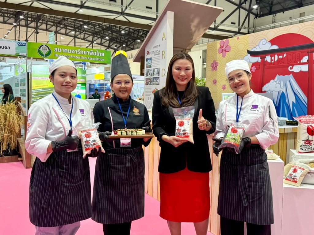 การสาธิตครั้งนี้มีความพิเศษ โดยใช้ ข้าวจาปอนิกา ซึ่งเป็นข้าวญี่ปุ่นที่นักวิจัยไทยประสบความสำเร็จในการพัฒนาปลูกในจังหวัดเชียงราย มีคุณภาพเทียบเท่าข้าวญี่ปุ่น นับเป็นการช่วยยกระดับมูลค่า เพิ่มโอกาสทางการตลาด และส่งเสริมเกษตรกรไทย